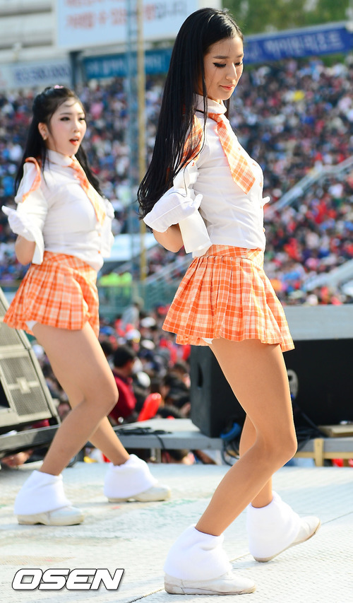 20일 오후 부산 사직구장에서 열린 2012 팔도 프로야구 플레이오프 4차전 롯데 자이언츠와 SK 와이번스의 경기, 롯데 치어리더 박기량이 화려한 무대를 선보이고 있다.