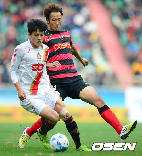 20일 오후 포항 스틸야드에서 열린 '2012 FA컵 결승전' 포항 스틸러스와 경남 FC의 경기, 후반 포항 박성호가 경남 윤신영을 수비하고 있다.