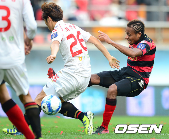 20일 오후 포항 스틸야드에서 열린 '2012 FA컵 결승전' 포항 스틸러스와 경남 FC의 경기, 후반 포항 아사모아가 슛을 시도하고 있다.