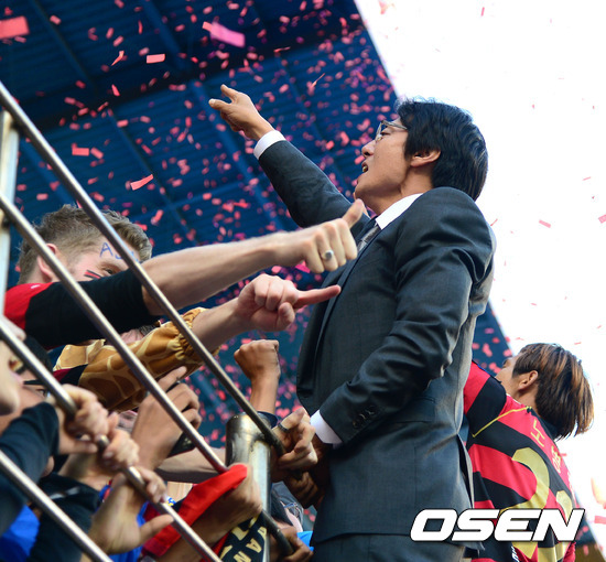 황선홍 감독,'우승 공약 철망 세리머니'