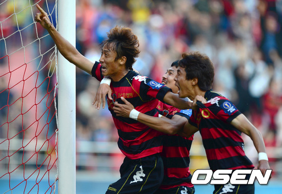 연장 후반 포항 박성호가 결승골을 성공 시키고 동료들과 환호를 하고 있다. /sunday@osen.co.kr