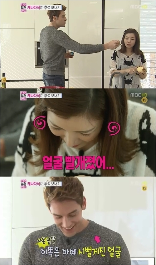 가상부부 줄리엔강과 윤세아가 같은 숟가락을 쓰고 부끄러워했다.