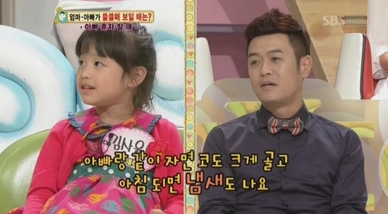 사윤 양은 20일 방송된 SBS '스타주니어쇼 붕어빵'에서 "아빠가 거실에서 혼자 자는데 그 모습이 쓸쓸해 보인다"며 이에 대해 말했다.