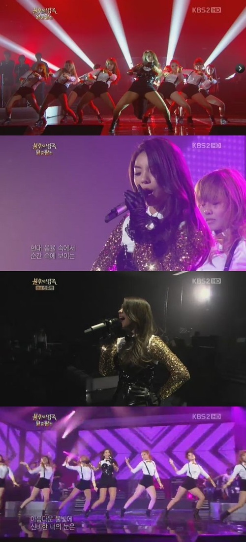 가수 에일리가 김완선의 '리듬 속의 그 춤을'로 랩과 댄스를 접목시키는 완벽한 무대를 펼쳤다.