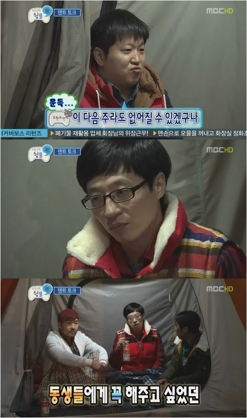 지난 7년여간 있었던 방송 뒷이야기와 서로에 대해 서운한 감정을 꺼내면서도 시종일관 유쾌했던 분위기는 텐트 안에 삼삼오오 모이면서 경건하게 바뀌었다. 처음으로 예능인의 모습이 아닌 인간 유재석, 박명수, 정준하, 정형돈, 길, 하하, 노홍철의 모습을 드러낸 것.