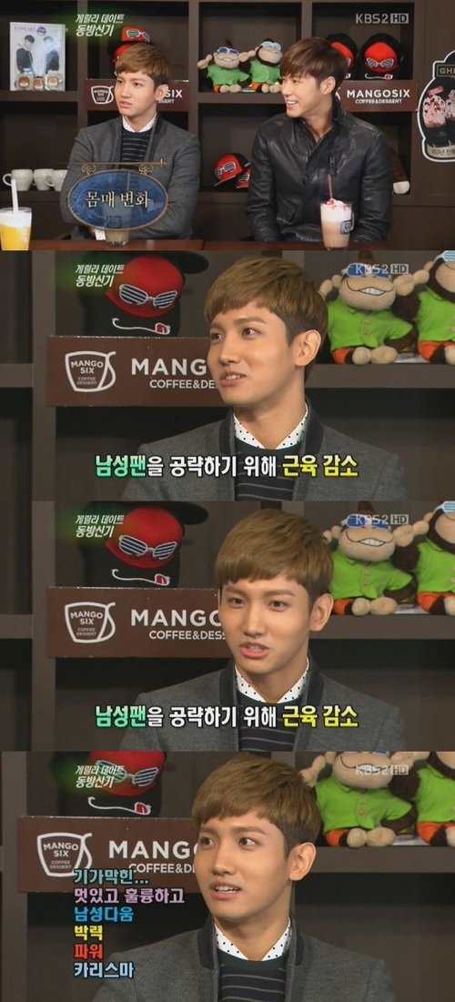 그룹 동방신기의 최강창민이 "남성팬 공략을 위해 근육을 빼 이 몸이 됐다"고 밝혔다.