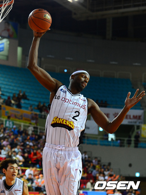 1쿼터 LG 벤슨이 리바운드를 하고 있다.