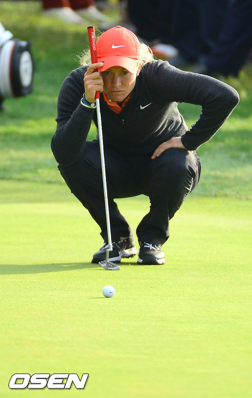 18번홀 페터슨이 퍼팅 라인을 살피고 있다./ soul1014@osen.co.kr