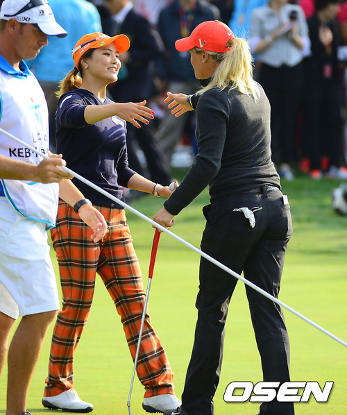 라운드를 마친 유소연이 페터슨과 포옹을 하고 있다./ soul1014@osen.co.kr