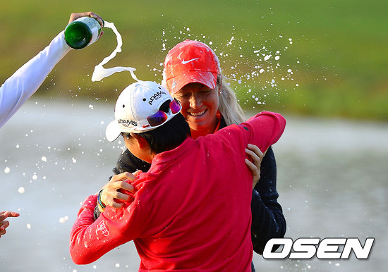 페터슨이 우승 확정 후 청야니의 축하를 받고 있다./ soul1014@osen.co.kr