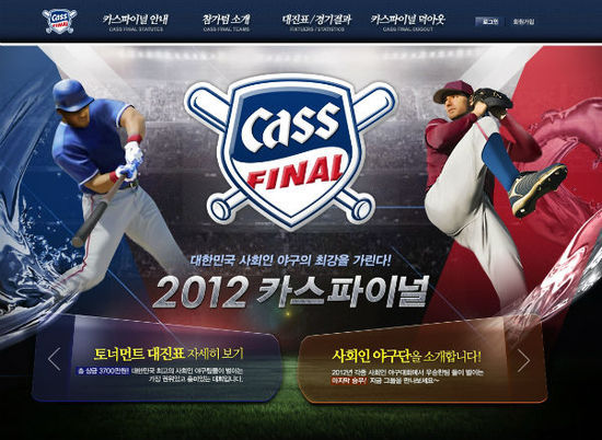 제 1회 카스 파이널 대회는 톡 쏘고 상쾌한 대한민국 판매 1위 맥주 브랜드 카스에서 주최하는 사회인 야구 대회다. 모든 경기 일정 및 결과, 기록 등은 카스 파이널 대회 공식 홈페이지(www.cassfinal.com)에서 확인할 수 있으며 공식 페이스북(http://www.facebook.com/CassFinal)에서도 확인 가능하다.