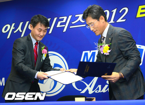 22일 오후 인천 문학구장 대회의실에서 2012 아시아시리즈 타이틀 스폰서 조인식이 열렸다.