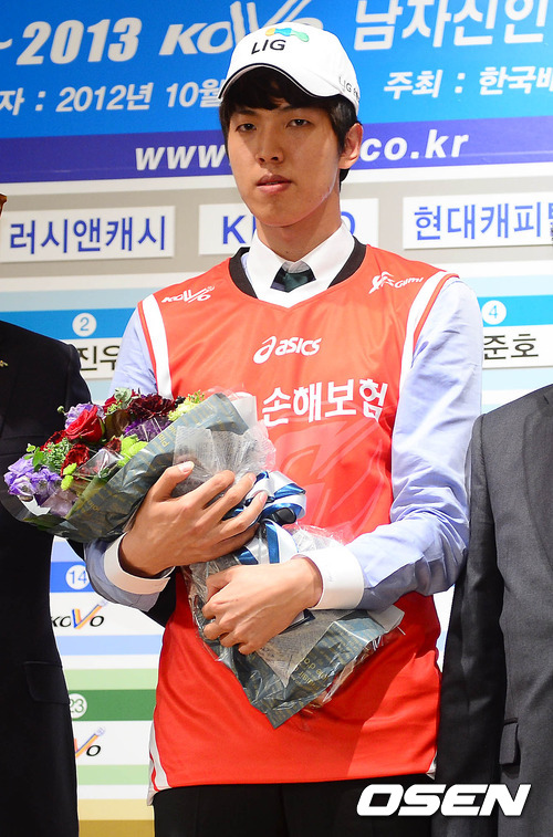 22일 오후 서울 청담동 리베라호텔에서 열린 '2012-2013 프로배구' 남자 신인선수 드래프트에서 LIG 황성근이 기념촬영을 하고 있다.