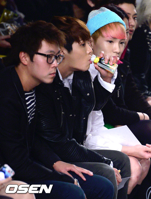 22일 오전 서울 용산 전쟁기념관에서 열린 '2012 추계 서울패션위크' 송혜명 디자이너 패션쇼를 찾은 샤이니 멤버 종현이 음료수를 마시고 있다.
