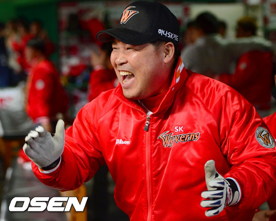 경기 종료 후 한국시리즈 진출이 확정되자 SK 이만수 감독이 기뻐하고 있다. / youngrae@osen.co.kr