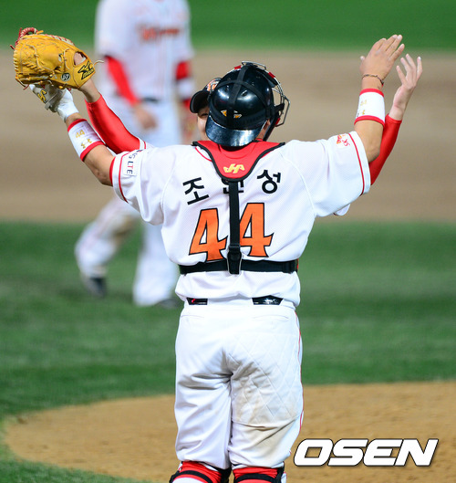 SK 정우람 조인성이 승리를 기뻐하고 있다./jpnews@osen.co.kr