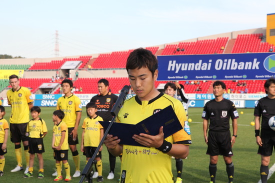 전남은 지난 21일 인천과 홈경기에서 축구를 통해 희망과 나눔의 의미를 되새기고, 감사나눔 실천을 통해 팬과 지역민들에게 사랑받는 구단, 행복을 전하는 기업이 되기 위해 포스코 광양제철소와 함께 하는 감사나눔 희망골 협약식을 가졌다.