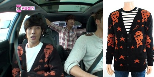 엠블랙 멤버 이준은 MBC 예능 프로그램 ‘우리 결혼했어요 시즌4’에서 스컬 프린트가 이색적인 G브랜드의 블랙 카디건을 입고 등장했다. 해당 카디건은 블랙 바탕에 오렌지 컬러의 해골 무늬가 팝 아트 적인 인상을 준다.