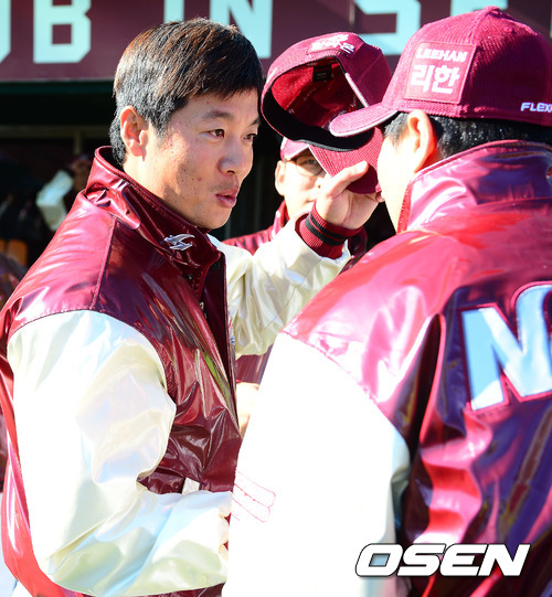 23일 오전 서울 목동구장에서 열린 넥센 마무리 훈련에서 넥센 히어로즈 염경엽 신임 감독이 선수단과 상견례를 가졌다.