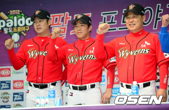 송은범은 23일 대구 실내체육관에서 열린 2012 팔도 프로야구 한국시리즈 미디어데이에서 이만수 감독, 선배 내야수 정근우와 함께 선수단 대표로 참석했다. 올 시즌 초반 팔꿈치 통증으로 인해 시즌 시작이 늦었던 송은범은 페넌트레이스에서 20경기 8승 3패 평균자책점 4.15를 기록했다. 롯데와의 플레이오프 3차전에서는 4이닝 6피안타 3실점 2자책으로 패전투수가 된 바 있는 송은범이다.