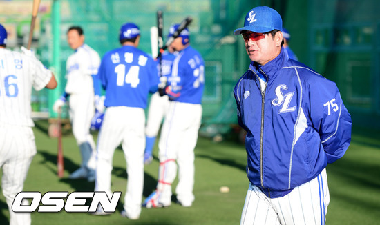 한국시리즈 1차전을 하루 앞둔 23일 오후 대구구장에서 삼성 류중일 감독이 선수들의 훈련을 지켜보고 있다.