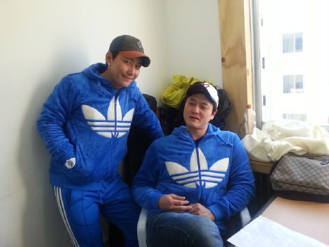사진 속 김원효와 이광섭은 똑같은 파란 색 운동복을 입고 모자까지 쓰는 등 쌍둥이 같은 코디를 했다. 이광섭은 한쪽 입 꼬리를 올리며 웃고 있지만, 김원효는 못마땅한 표정으로 카메라를 노려보고 있다.