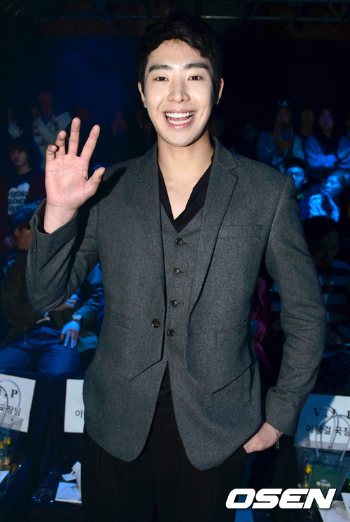 23일 오후 서울 용산 전쟁기념관에서 '2012 추계 서울패션위크' 강동준 디자이너 패션쇼를 찾은 박민우가 포토타임을 갖고 있다.