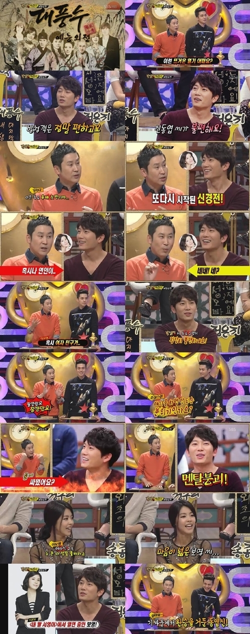 이어 신동엽은 속사포로 지성에게 “내가 요새 분위기를 몰라서 그렇다”, “얘기를 하면 안 되는 분위기냐?”, “싸웠어요?”라고 물었고, 멘탈붕괴에 이른 지성은 속 시원하게 “여자친구도 두 분(이윤지, 김소연) 다 좋아한다. 지금 타 방송사에서 열심히 연기하고 있다”고 말해 신동엽을 흐뭇하게 했다.