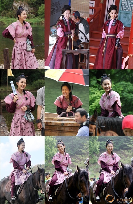 공개된 사진 속 이진은 강가, 산 속, 세트를 막론하고 함박웃음 가득한 모습으로 촬영을 즐기고 있으며, 말 위에서도 환한 미소를 짓고 있어 말 타는 모습까지도 편안해 보인다.