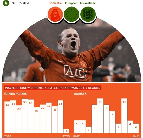이후 루니는 매 시즌 눈에 띄는 득점력으로 지난 시즌까지 10년간 총 144골을 터트렸다. 이는 프랭크 램파드(첼시, 124골)와 티에리 앙리(현 뉴욕레드불스, 117골) 저메인 데포(토튼햄, 106골) 로비 킨(현 LA갤럭시, 102골)의 발자취를 훌쩍 뛰어넘는 기록으로, 그는 최근 10년간 EPL에서 가장 많은 골을 터트린 선수로 이름을 올리고 있다.