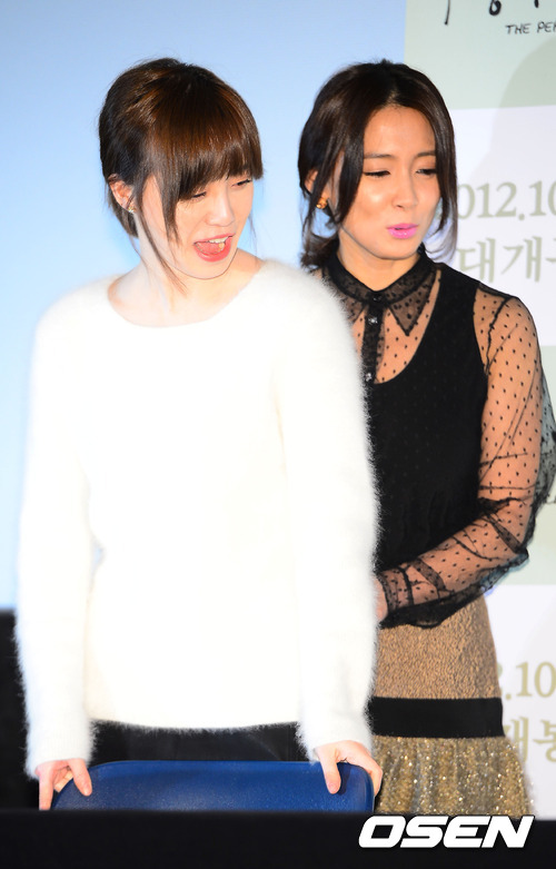 24일 오후 서울 왕십리 CGV에서 열린 배우 겸 감독 구혜선의 두 번째 장편영화 연출작 ‘복숭아나무’의 언론배급 시사회에서 구혜선 감독과 남상미가 자리에 앉고 있다.