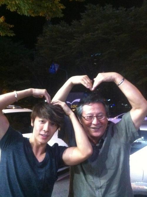 공개된 사진 속 동해는 박근형과 다정하게 하트를 그리며 미소 짓고 있다. 박근형은 드라마 속에서 보던 근엄한 모습이 아니라 실제 손자와 함께 노는 할아버지 같은 친근한 모습이다.
