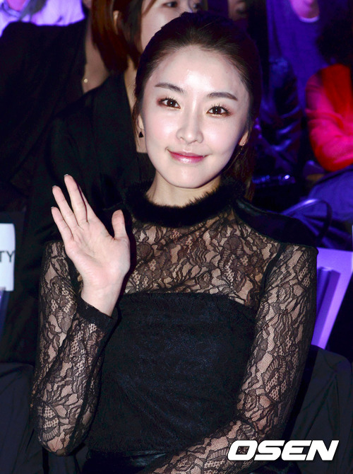 24일 오후 서울 용산 전쟁기념관에서 열린 '2012 추계 서울패션위크' 이상봉 디자이너 패션쇼를 찾은 정유미가 포토타임을 갖고 있다.