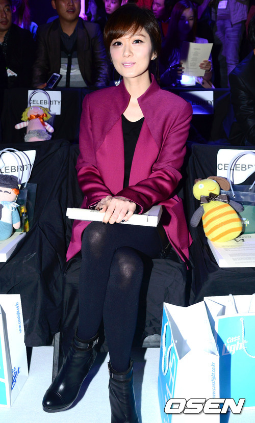 24일 오후 서울 용산 전쟁기념관에서 열린 '2012 추계 서울패션위크' 이상봉 디자이너 패션쇼를 찾은 장나라가 포토타임을 갖고 있다.