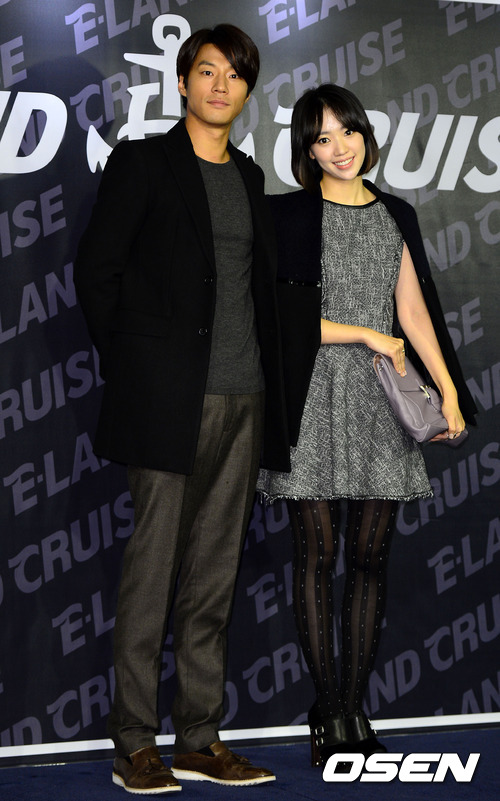 24일 오후 여의도 선착장에서 열린 '이랜드 크루즈' 출항식에서 배우 이천희-전혜진 부부가 포토타임을 갖고 있다.