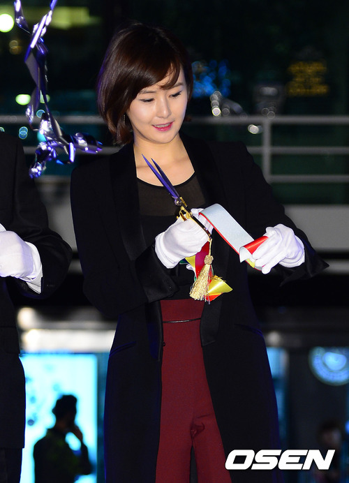 24일 오후 여의도 선착장에서 열린 '이랜드 크루즈' 출항식에서 배우 최정윤이 테이프 커팅식을 갖고 있다.
