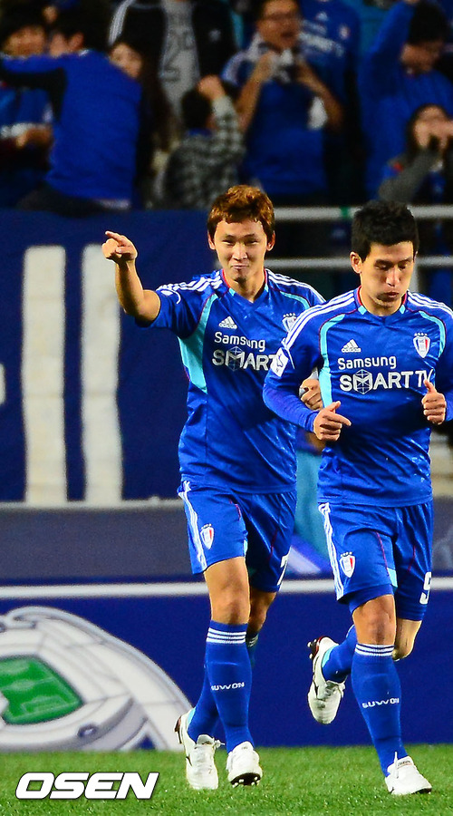 24일 저녁 수원월드컵경기장에서 열린 '현대오일뱅크 K리그 2012' 수원 삼성과 경남 FC 경기에서 전반 수원 조동건이 전반 3분만에 선제골에 성공한 후 기뻐하고 있다.