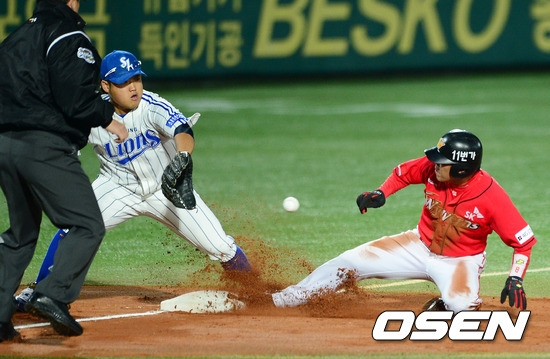 이후에는 발이 빛났다. 2번 박재상이 좌익수 플라이로 물러나자 정근우는 최정의 타석 때 초구부터 과감히 스타트를 끊었다. 1회 박재상의 도루를 잡아냈던 삼성 포수 이지영이 황급히 2루로 공을 던졌으나 오히려 2루수 키를 넘겼고 정근우는 3루까지 진루할 수 있었다. 공이 뒤로 빠진 것을 보고 저돌적인 대시로 3루까지 내달린 기민함이 돋보였다. 정근우이기에 가능한 플레이였다.
