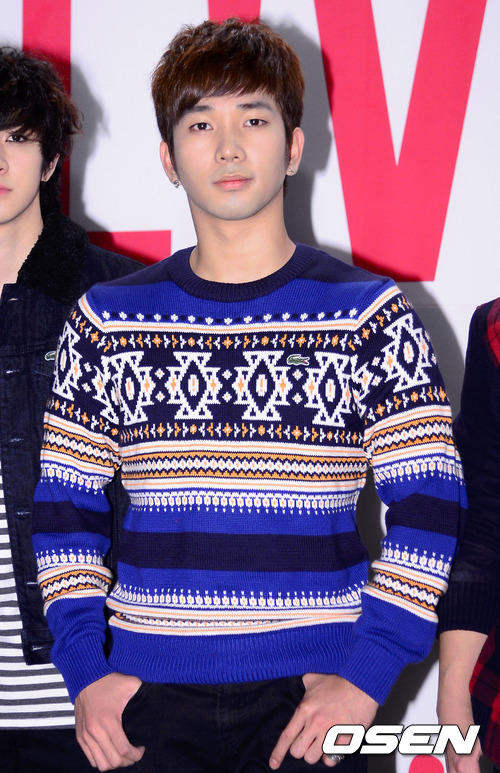 24일 오후 반얀트리 클럽 앤 스파 서울, 풀사이드 야외 수영장에서 열린 '라코스테 라이브 윈터 원더랜드' 파티에서 엠블랙 지오가 포토타임을 갖고 있다.