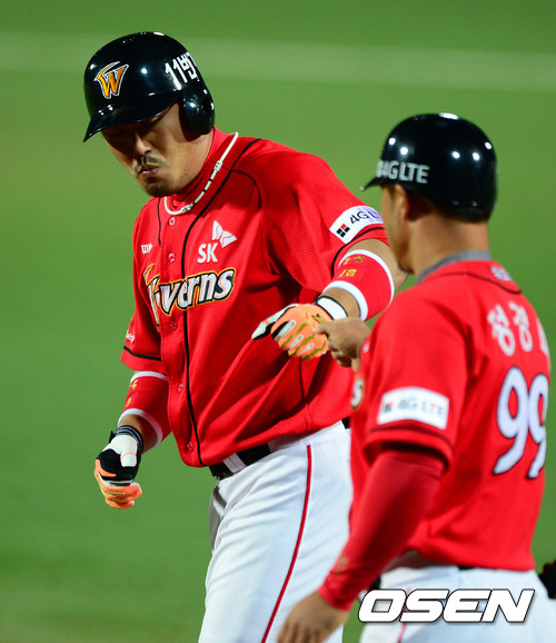 플레이오프 득점권 타율 9타수 무안타로 0. 게다가 그로 인한 책임감과 부담감으로 인해 위축된 감이 컸던 4번 타자다. 비록 팀은 패했으나 오랜만에 득점권 찬스를 성공시키며 부담의 탈을 벗었다. 올 시즌 3할타 4번 타자로 회춘했다는 평까지 받았던 이호준(37, SK 와이번스)이 3볼에서 실투가 나오자마자 그대로 공략하는 적극성을 보여주며 슬럼프 탈출 가능성을 높였다.