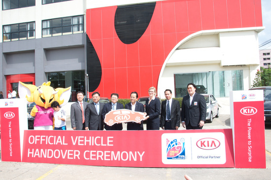 기아차는 24일(현지시간) 태국 방콕 소재 기아 센터에서 대회 관계자들과 현지 기자단이 참석한 가운데 ‘2012 FIFA 풋살 월드컵’ 대회 공식 차량을 전달했다. 이날 행사에서 기아차는 모닝, 프라이드, 카니발 등 33대의 차량을 전달했으며 이 차량들은 주요 VIP 의전과 행사에 사용된다.