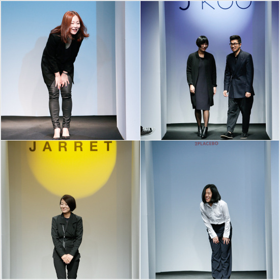 Jarret의 이지연 디자이너는 무채색의 잔잔함을 바탕으로 우아하고 섬세한, 지적인 여성의 이미지를 표현했다. 기본에서 벗어나지 않는 디자인 속에 원단의 자연스러운 흐름을 이용한 포인트가 돋보이는 의상들이 선보여졌다.
