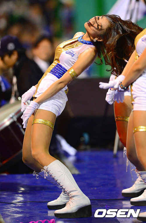 25일 오후 대구구장에서 열린 2012 팔도 프로야구 대구 라이온즈와 SK 와이번스의 한국시리즈 2차전, 삼성 치어리더가 멋진 무대를 펼치고 있다.