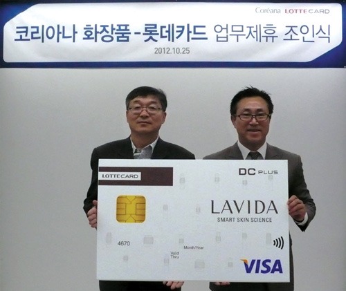코리아나화장품(대표이사 유학수)은 25일 코리아나 본사에서 롯데카드와 업무 제휴 조인식을 맺고 소비자를 위한 '라비다 롯데 DC플러스 카드'를 출시했다.