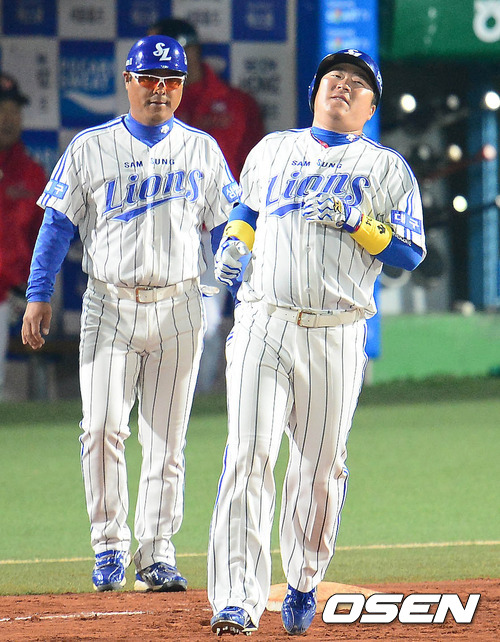 25일 오후 대구구장에서 열린 2012 팔도 프로야구 삼성 라이온즈와 SK 와이번스의 한국시리즈 2차전 경기 7회말 2사 1루 최형우의 홈런성 타구가 중견수 김강민에 잡히자 아쉬운 표정을 짓고 있다.