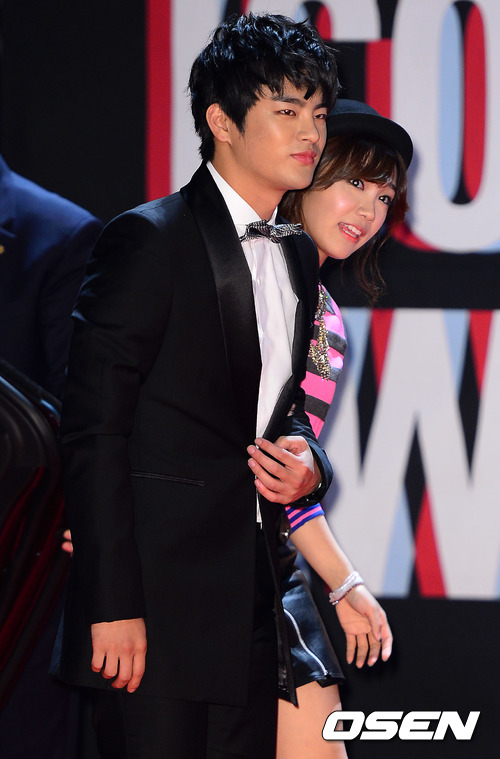 25일 저녁 서울 상암동 CJ E&M에서 진행된 '2012 스타일 아이콘 어워즈(SIA)' 레드카펫 행사에서 가수 겸 배우 서인국, 정은지가 레드카펫 행사를 갖고 있다
