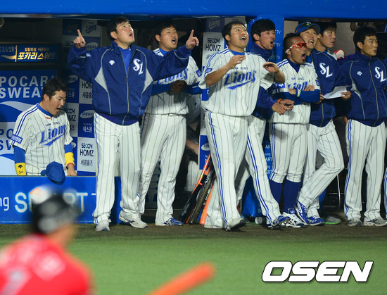 9회초 2사에서 SK 박진만이 외야플라이를 날리자 삼성 선수들이 승리를 확신하며 기뻐하고 있다./ jpnews@osen.co.kr