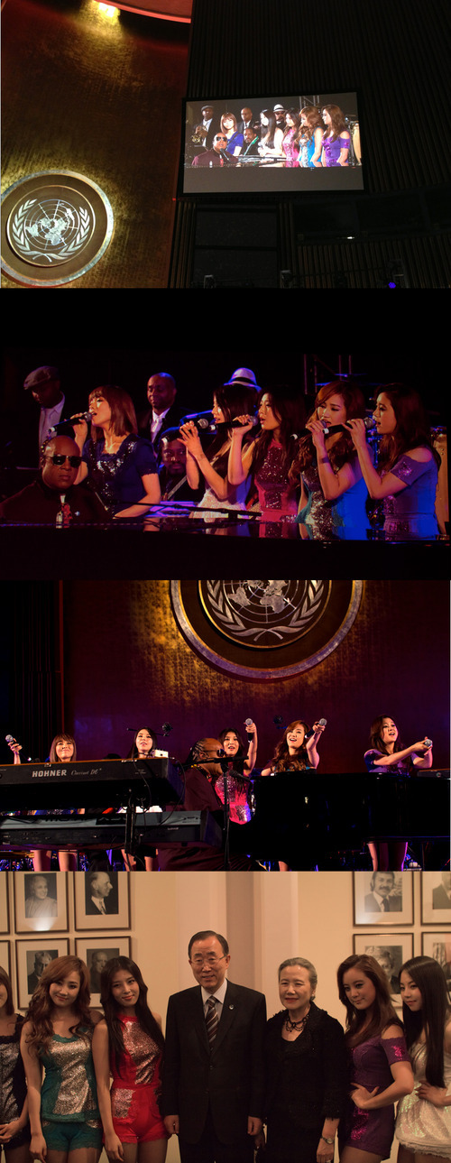 원더걸스는 지난 24일 미국 뉴욕에 위치한 UN본부 본회의장에서 스티비 원더, 스팅, 폴사이먼 등 월드 스타들과 함께 공연을 펼쳤다.