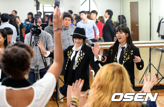 그룹 미쓰에이가 26일 오후 서울 여의도 KBS 공개홀에서 'K-POP 월드페스티벌 창원대회' 참가자들의 연습실을 방문해 만남을 가졌다.