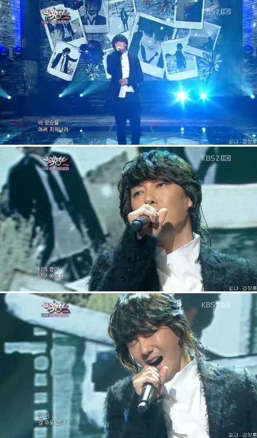 김장훈은 26일 오후 6시 방송된 KBS 2TV '뮤직뱅크'에 출연해 10번째 앨범의 타이틀곡 '없다'를 선보이며 감성적인 무대를 꾸몄다.